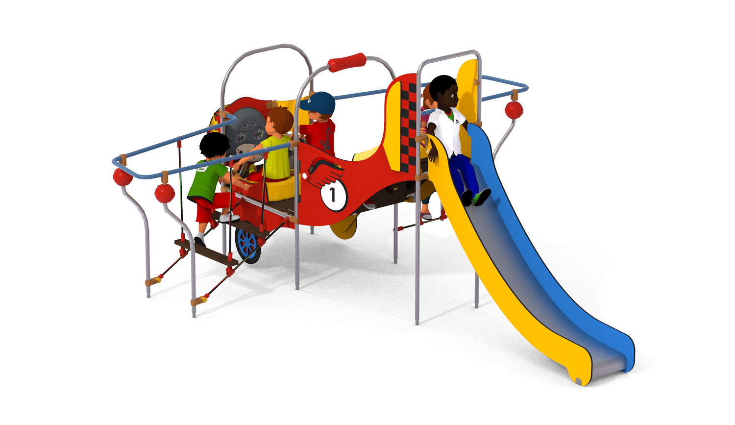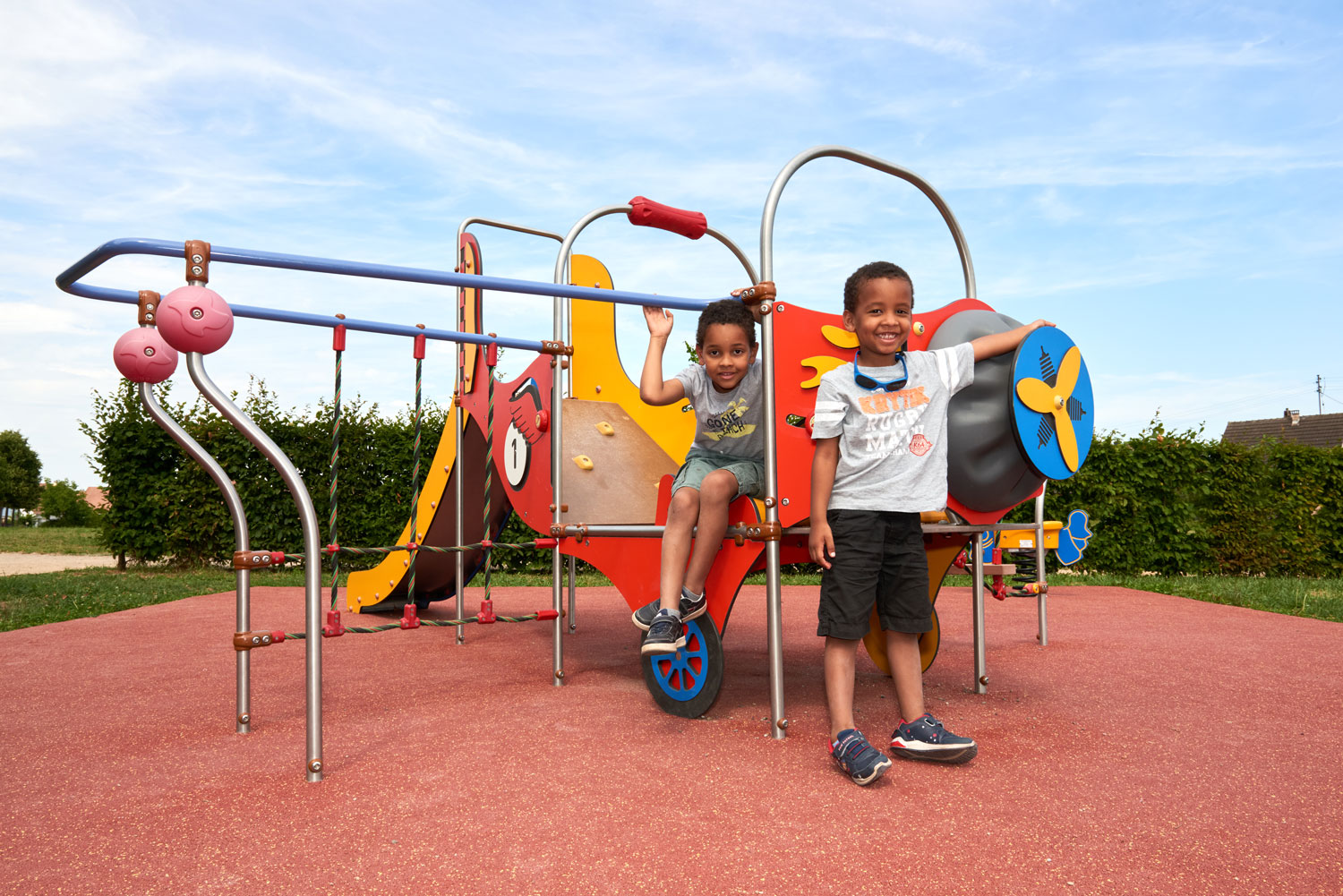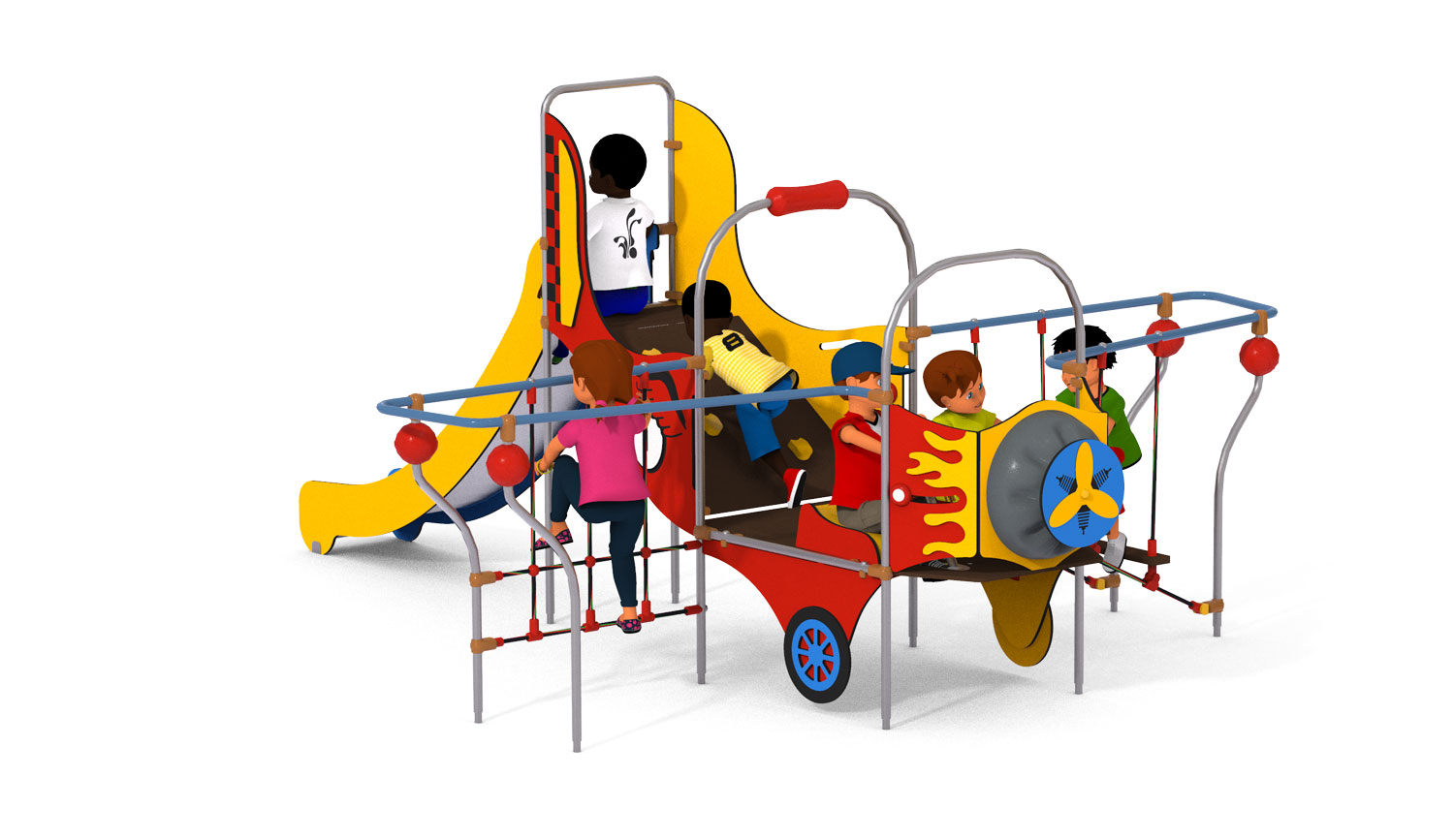 Lekplanet har tydliga flygplansdetaljer och öppna ytor som gör det enkelt för barn att klättra, utforska och skapa sina egna berättelser. Rutschbanan ger en extra nivå av fart och glädje. Robusta material och omsorgsfullt designade former gör flygplanet till ett säkert och långlivat tillskott på lekplatsen.