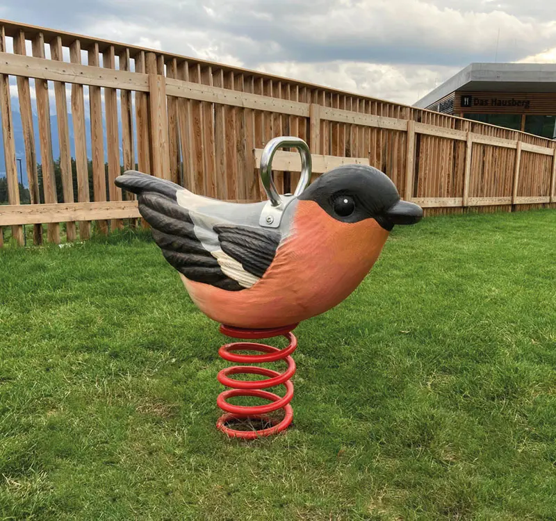 Fågel Klara är en av flera naturlika gungdjur från Österrike. Det naturtrogna utseende på djuren från Wippelino ger verkligen lekplatsen något extra och inspirerar båda unga och lite äldre.