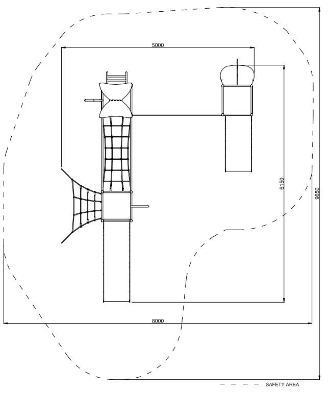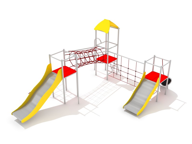 Består av galvaniserade och pulverlackerade stolpar med rundade profiler. Plattformens golv är täckta av en PE-platta med halkskydd. Rutscharna är gjorda av rostfritt stål, sidorna är gjorda av HDPE-material.