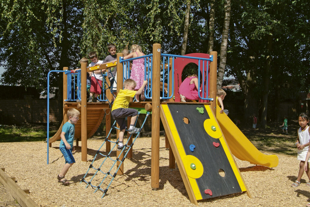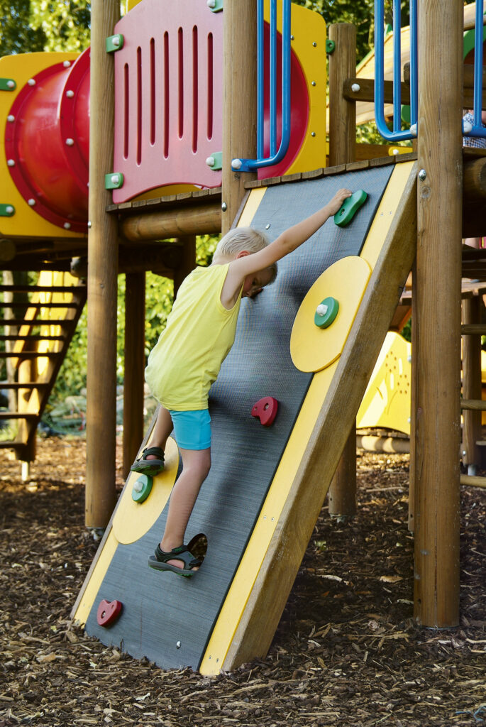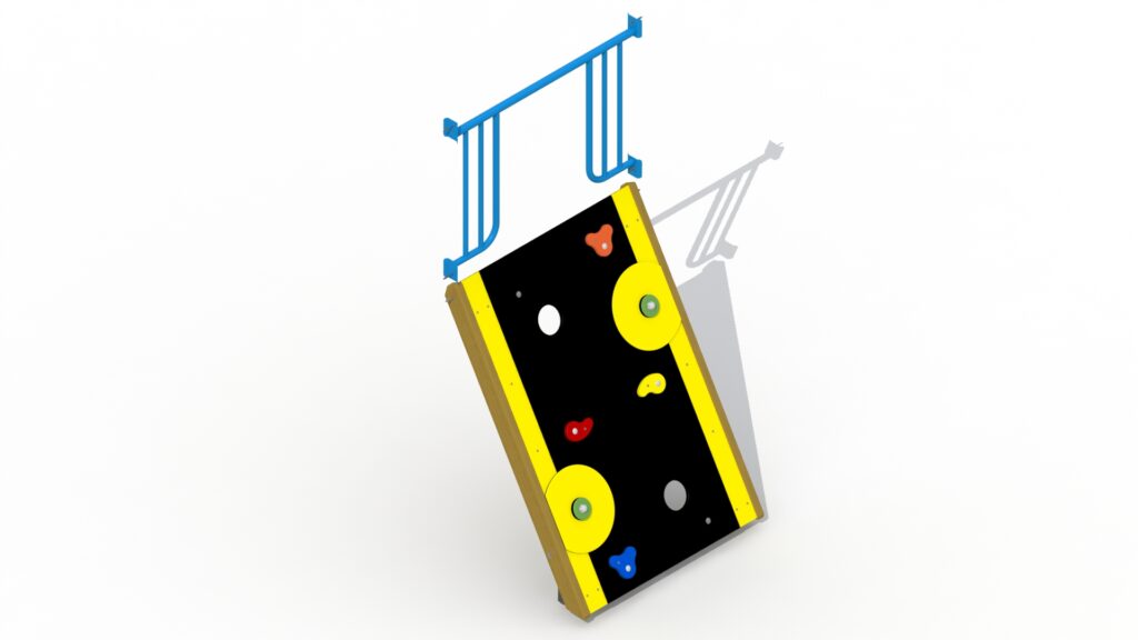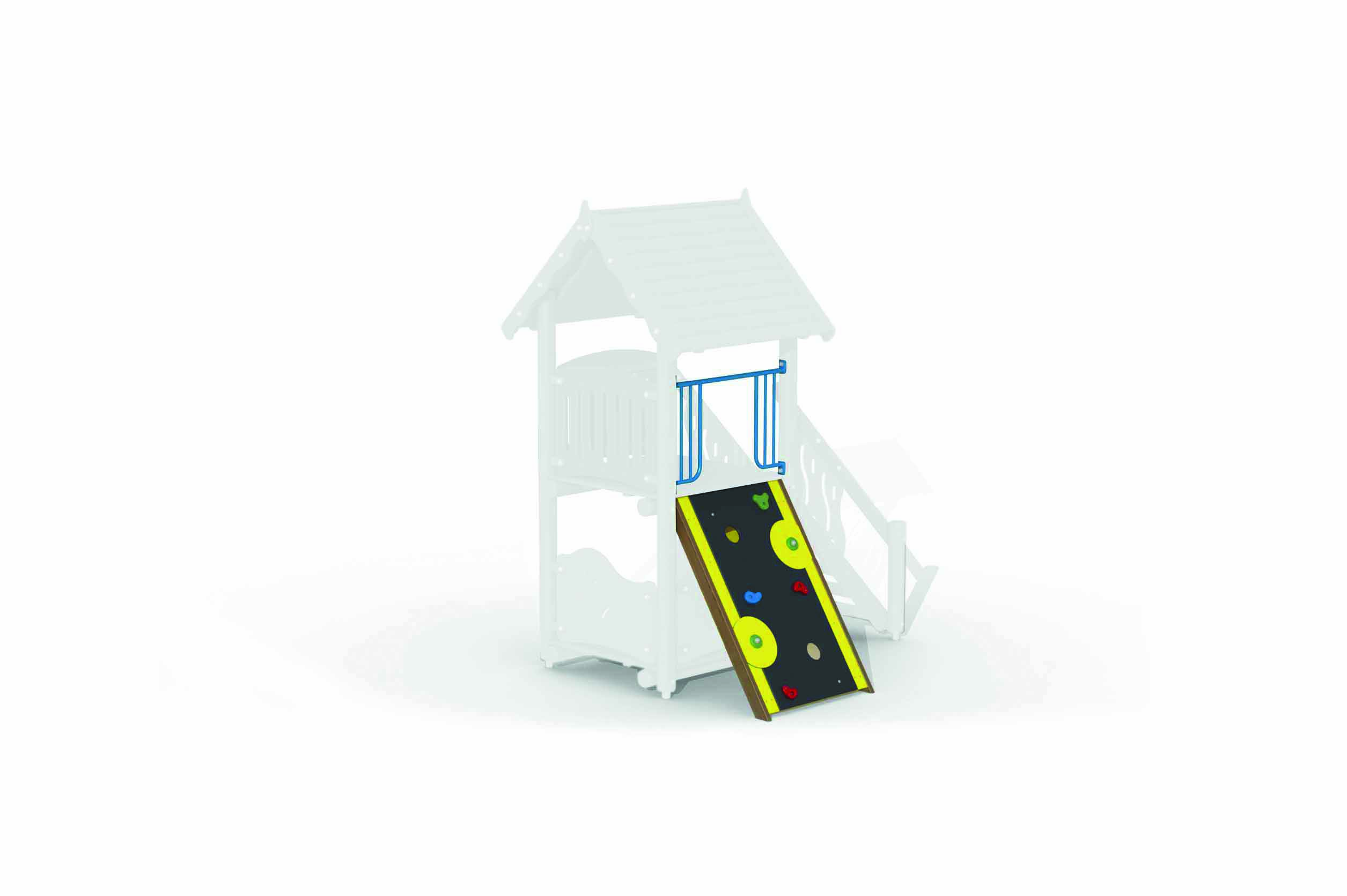 Bergvägg gjord av speciell HDPE halkfri skiva 19 mm tjock med HDPE klättergrepp. Denna tilläggskomponent kan endast placeras i motsatt riktning mot en trappa och är lämplig för barn i åldrarna 4 till 12.