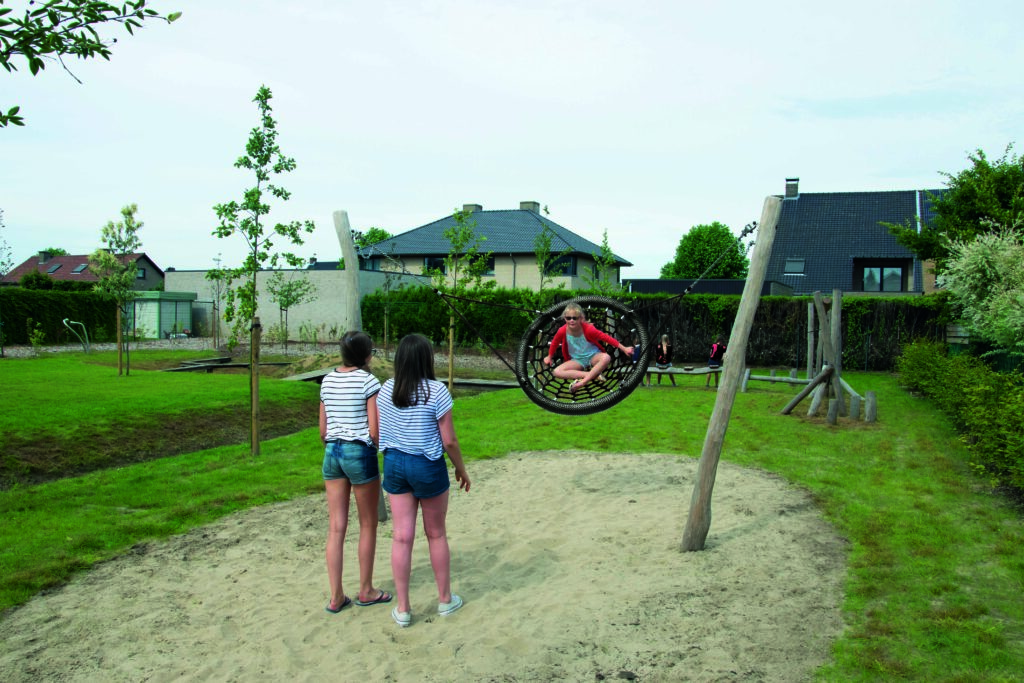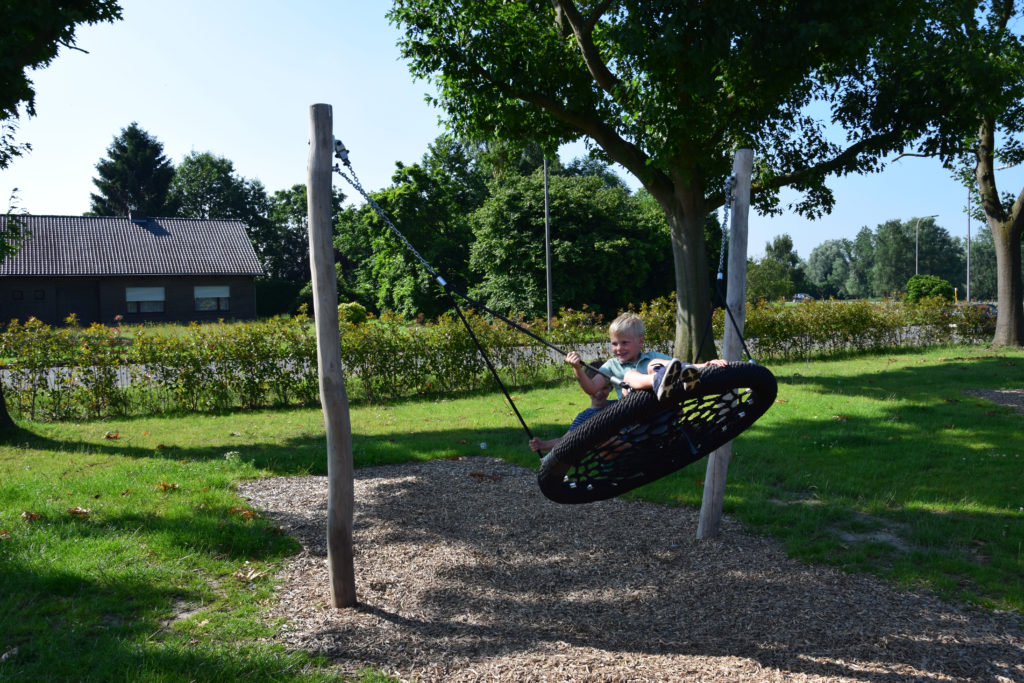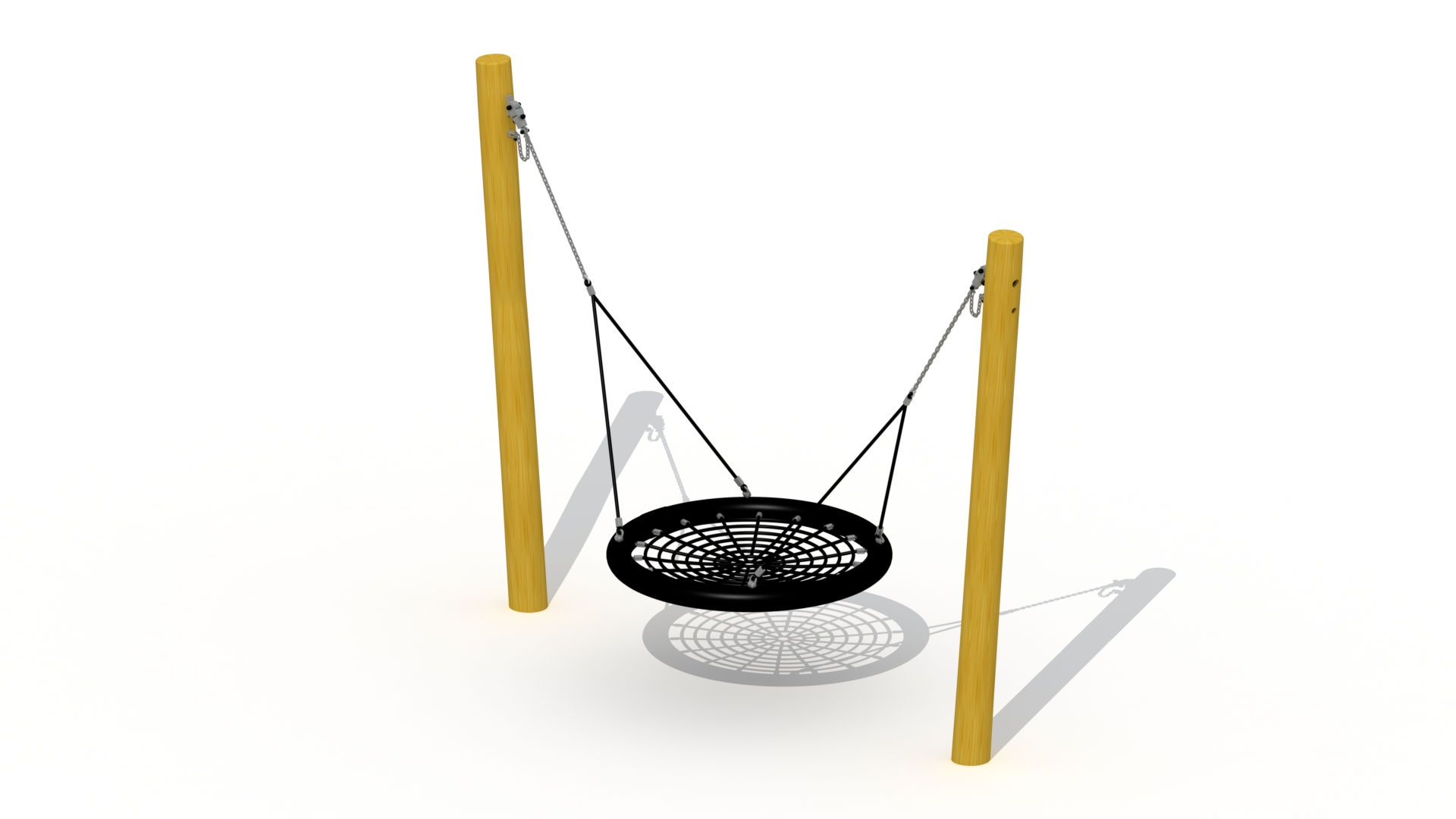 Kompisgunga med stolpar i robiniaträ. Här kan många barn gunga samtidigt. Gungan är också lämplig för barn och vuxna med funktionshinder.