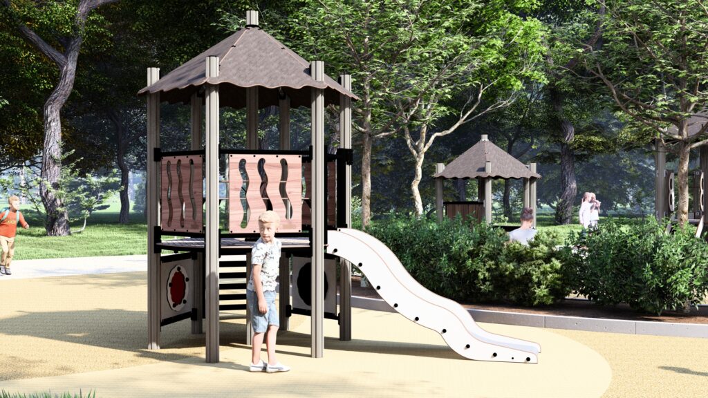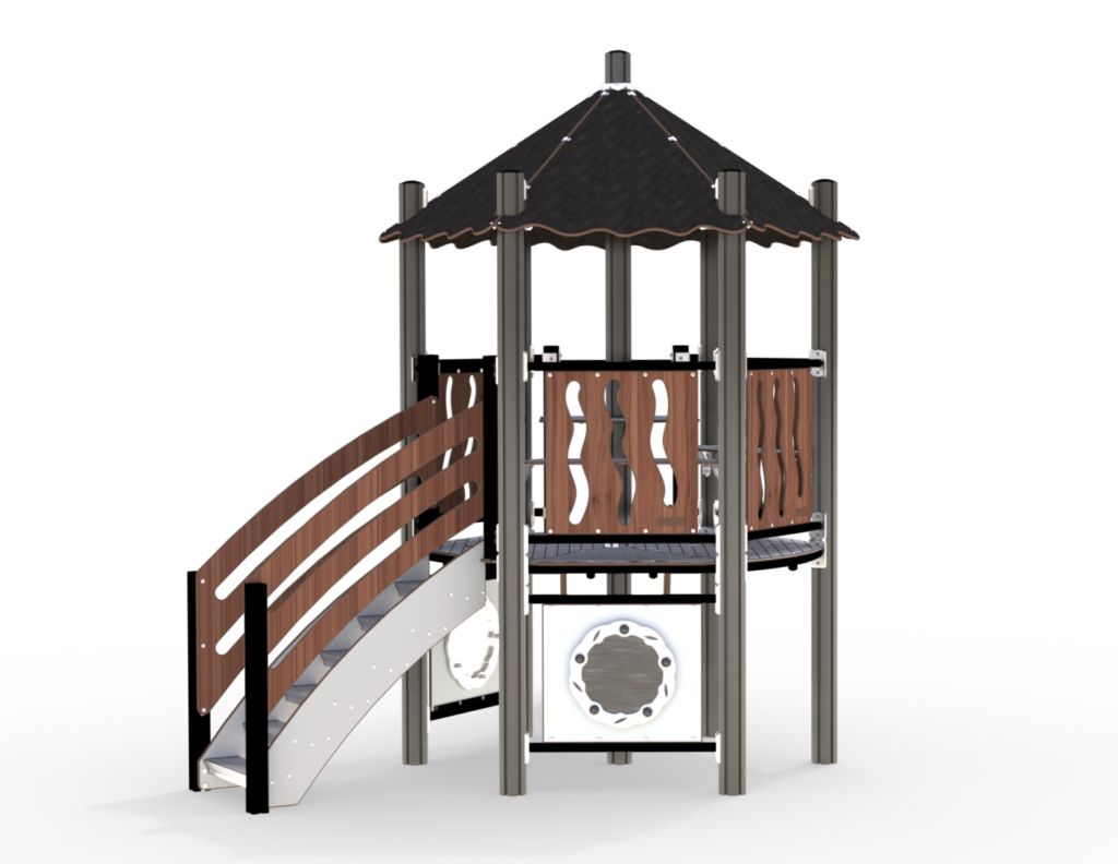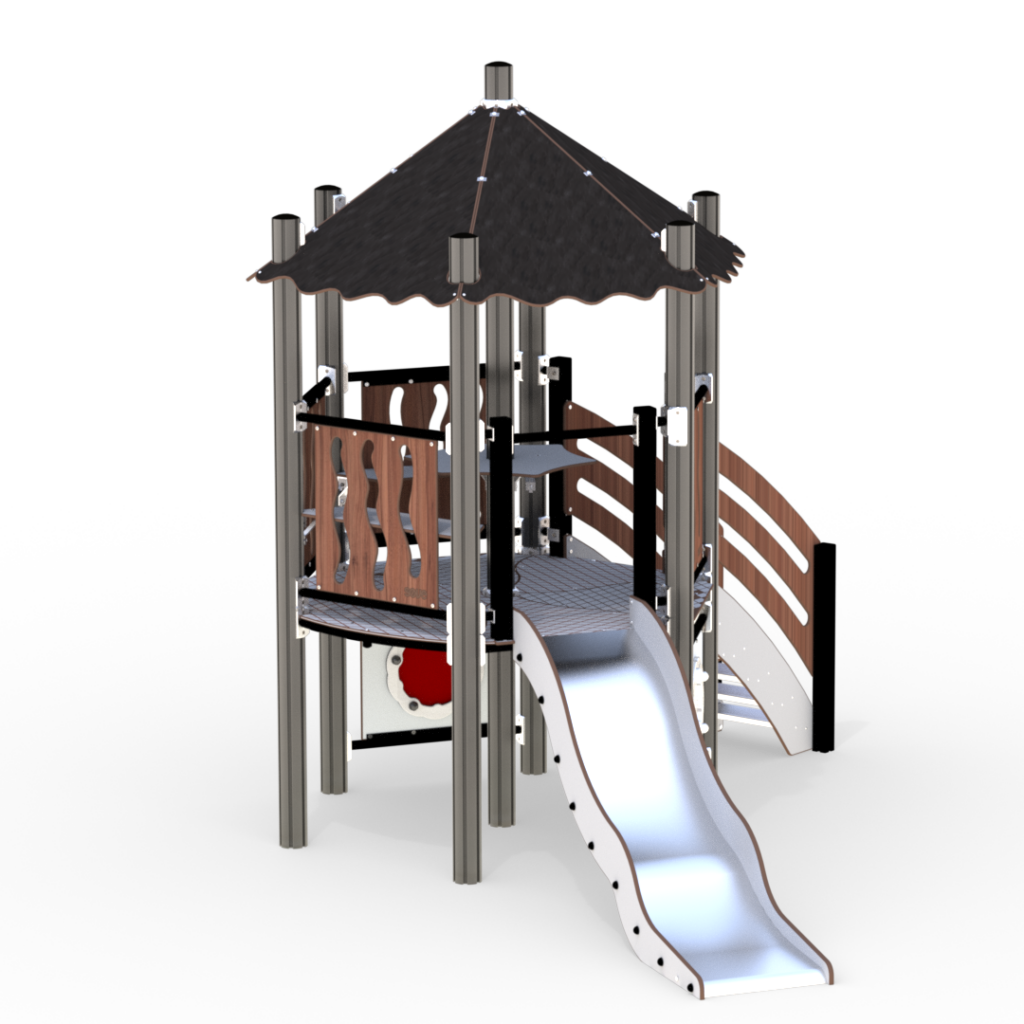 Lekhuset är en perfekt arena för rollspel och är en utmärkt samlingsplats. Det är upphöjt över marken, vilket gör samlingsplatsen extra spännande. Ta trappan upp i huset och lämna det via den vågiga rutschkanan. På bottenvåningen finns två speltavlor.