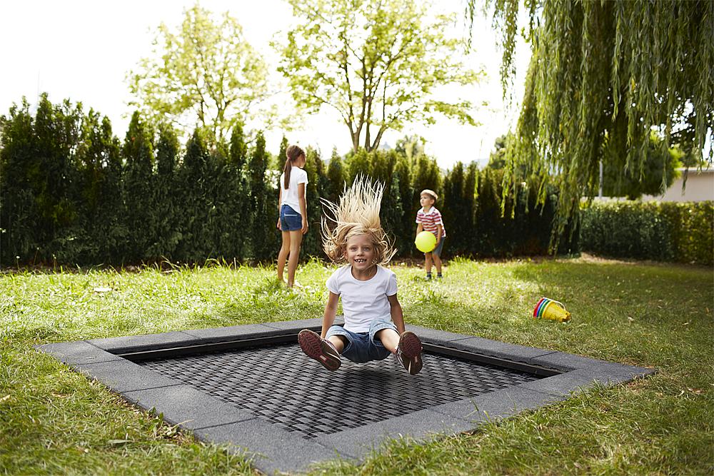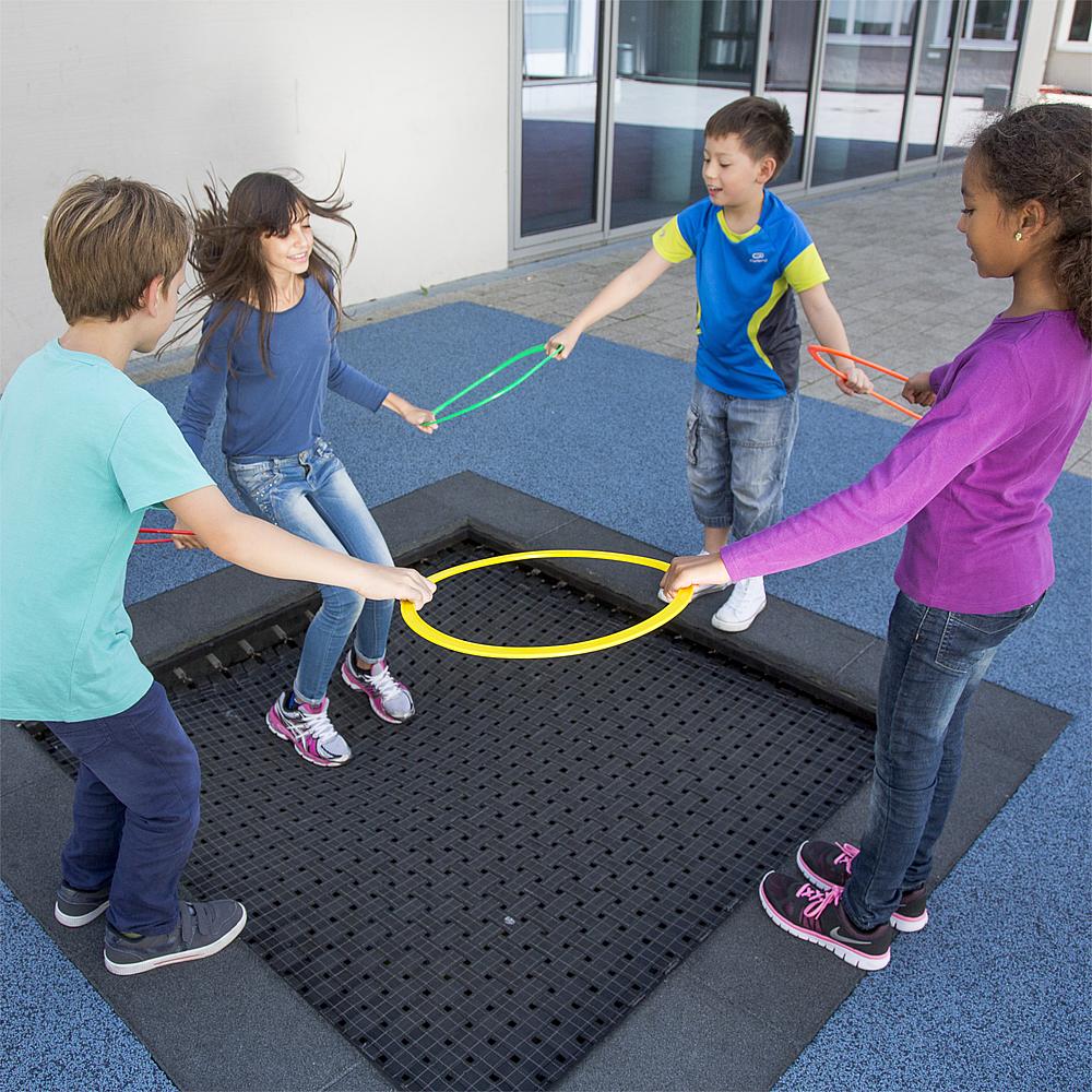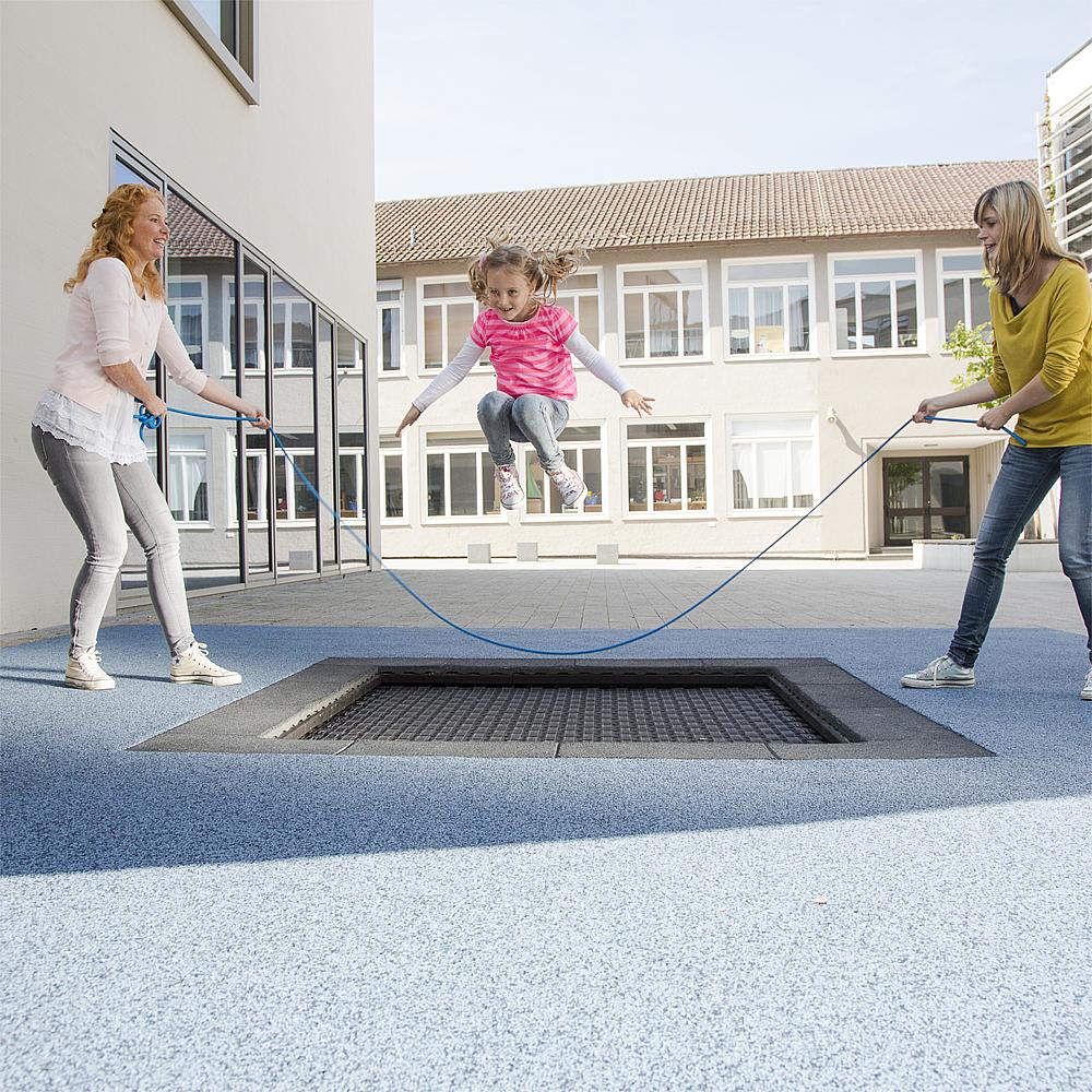 Floor trampoline Kids Tramp Playground 150×150 cm är en mycket hållbar och stark trampolin från en av Europas mäst kända trampolinproducenter, Eurotramp.